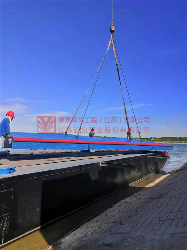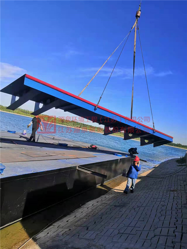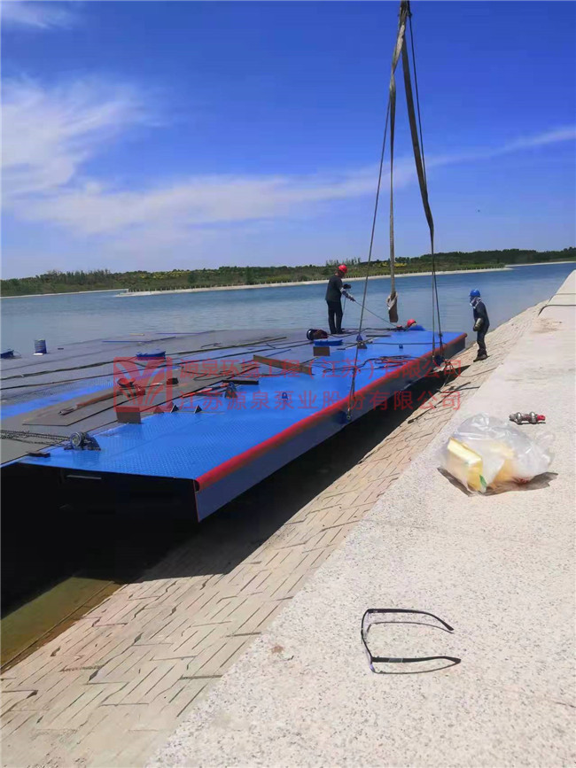 茌平縣東邢水廠項(xiàng)目取水浮船泵站正在安裝中