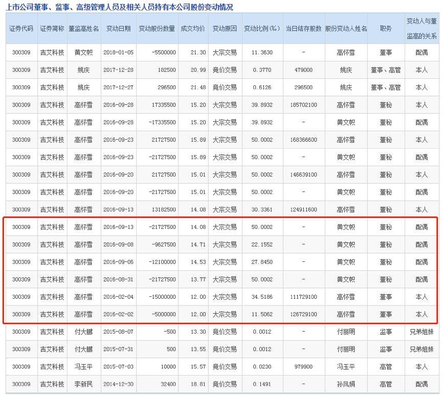 2018年3月23日,實控人高懷雪公告稱通過大宗交易分別減持了550萬股和2450萬股給四川信托-吉艾科技員工持股1號集合資金信托計劃和總經(jīng)理姚慶,共計減持了6.2%的股份。此次協(xié)議轉(zhuǎn)讓也引來了交易所的問詢。深交所的關(guān)注點包括姚慶的資金來源、是否為股權(quán)代持等。