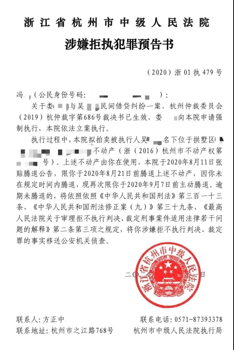 人民法院在此背景下,創(chuàng)造出了新的執(zhí)行手段——涉嫌拒執(zhí)犯罪預(yù)告(或拒執(zhí)犯罪線索預(yù)移送立案?jìng)刹橥ㄖ?,即在正式拒?zhí)移送之前,增加了一個(gè)執(zhí)行的方式手段。