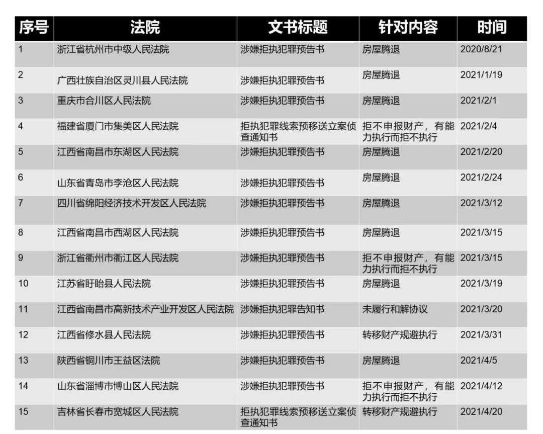 涉嫌拒執(zhí)犯罪預(yù)告案例清單