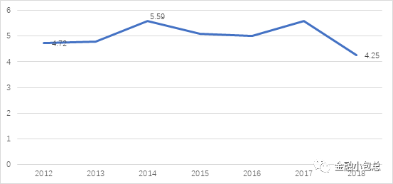 圖十九:2012-2018年臺灣地區保險業凈值比走勢