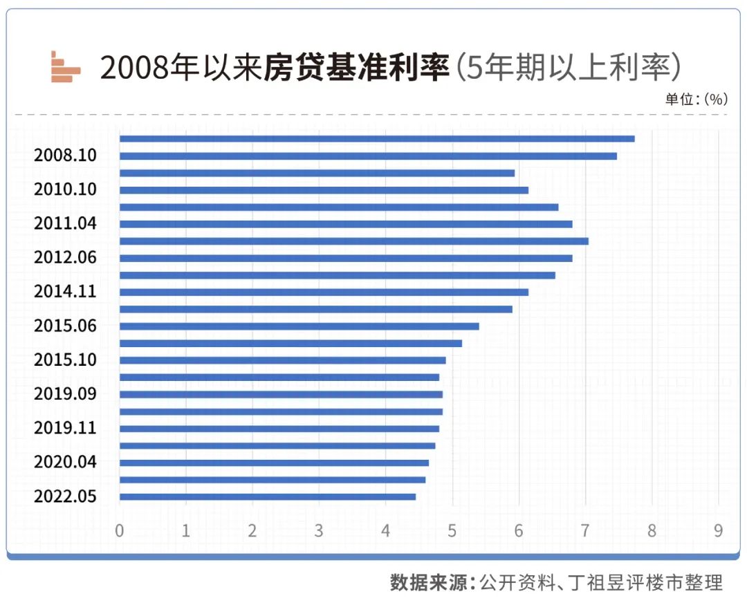 為了刺激購(gòu)房需求,據(jù)CRIC梳理,僅2008年全年就有5次降息,累計(jì)降幅2.16%,當(dāng)年12月5年期以上貸款利率下降至5.94%。
