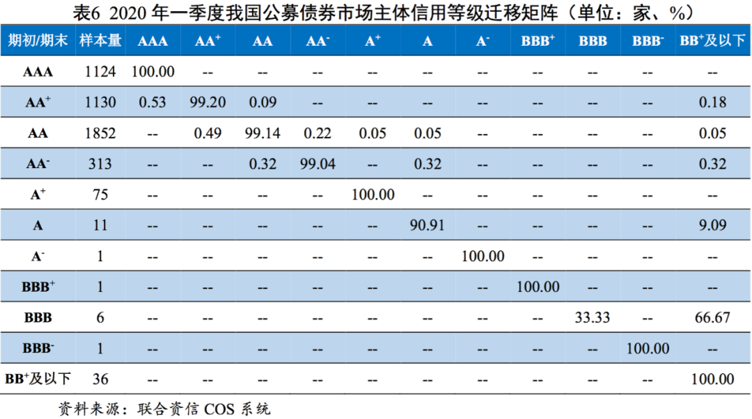 [9]信用等級遷移矩陣的計算方法采用Cohort法,即只對期初和期末均有效的發(fā)行人主體信用等級從期初到期末的變動情況進行統(tǒng)計,不包括統(tǒng)計期內(nèi)新發(fā)和到期債券發(fā)行人主體信用等級的變動情況,亦不考慮期間等級多調(diào)和等級回調(diào)的情況。