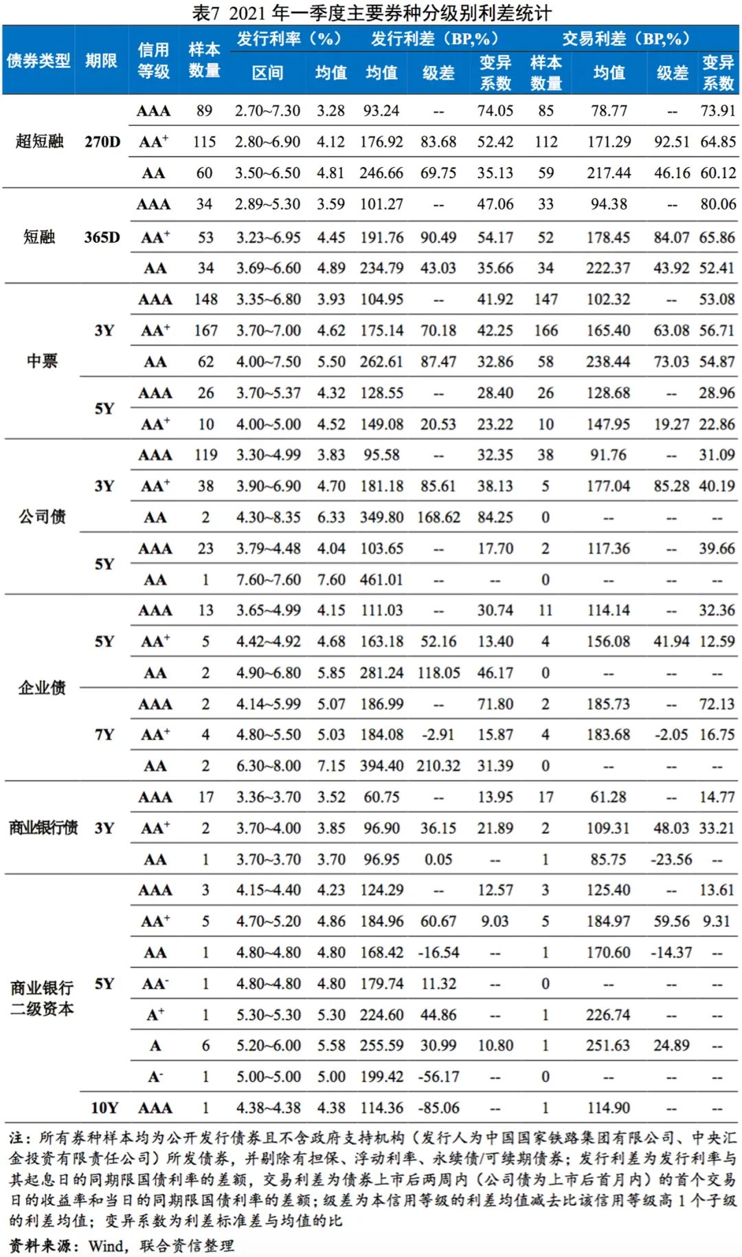 2021年一季度,信用等級(超短融、短融為主體信用等級,其他券種為債項信用等級)對債券發(fā)行利率、利差的影響主要體現(xiàn)在以下方面: