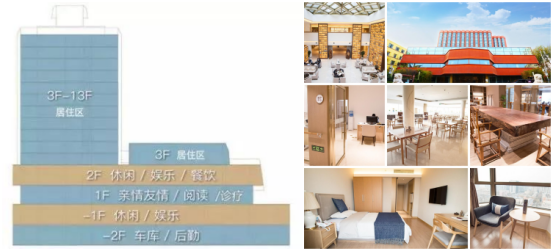 本案例項目即為北京新北緯飯店,該酒店位于北京市南二環內的,于1990年開業,地上13層、地下2層,是一家集住宿、餐飲、會議、娛樂于一體的四星級主題文化酒店,隨著時代的發展,該酒店的定位不再符合時代要求,2005年不得不加盟如家,即使如此,2017年不得不再次面臨轉型。2018年該物業裝入首厚康健,后首厚康健就該項目與大家保險深度合作,經過改造,該項目成功打造為養老地產項目。