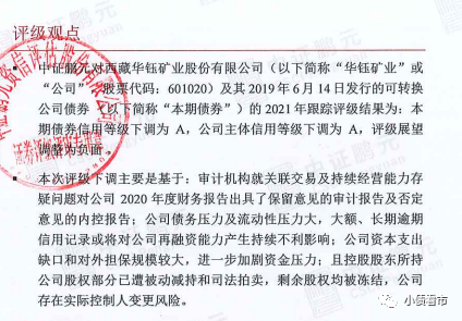 近日,中證鵬元公告稱,將華鈺礦業(601020.SH)主體信用等級由AA-下調至A,“華鈺轉債”信用等級由AA-下調至A,評級展望由“穩定”調整為“負面”。