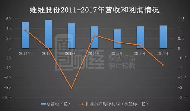 在不同領域兜兜轉轉十幾年,那維維股份的業績到底如何?直接看圖: