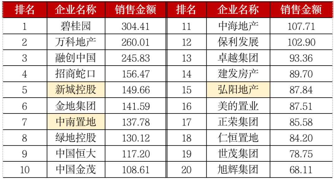 表:2021年1-4月江蘇省房企流量銷售金額排行榜(單位:億元)