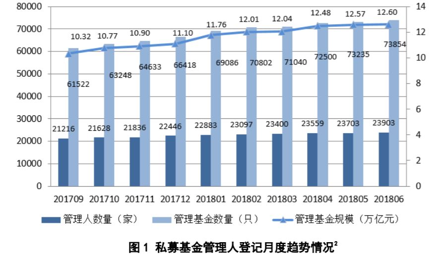 最后看看私募基金牌照,采用的是在基金業協會提交材料備案,備案通過即可獲取,目前仍然開放申請,這個牌照有多容易獲得呢?基金業協會每個月會在官網公布備案通過情況,最新數據是:2018 年 6 月在資產管理業務綜合報送平臺新注冊賬號的機構 604 家,提交私募基金管理人登記申請的機構 413 家,辦理通過機構 263 家。 截至 2018 年 6 月底,在基金業協會已登記私募基金管理人 23903 家,較上月增長 0.84%。