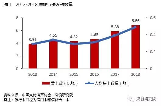 相比于成熟的歐美體系,信用卡業(yè)務(wù)在我國起步較晚,但發(fā)展極為迅速。數(shù)據(jù)顯示,2013年至2018年,我國銀行卡發(fā)卡數(shù)量總體呈上升趨勢,尤其在2016-2018年三年期間,年增發(fā)卡量高達(dá)約1億張,如圖1所示: