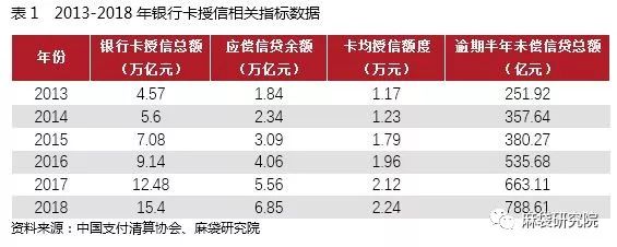 銀行卡數(shù)量、銀行卡消費(fèi)業(yè)務(wù)的雙增,推動(dòng)了銀行卡授信總額的攀升。中國支付清算協(xié)會(huì)數(shù)據(jù)顯示,六年間銀行卡授信總額從4.57萬億元增長至15.4萬億元,而在貸余額亦實(shí)現(xiàn)了跨越式增長,從2013年的1.84萬億元激增至2018年的6.85萬億元,如表1所示: