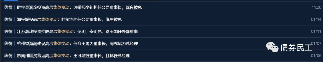 當然高管集體變動并不意味著是所有董事、監事和高級管理人員都發生變動,一般3個人以上的變動就屬于集體變動。從公開披露的信息來看,近期城投公司高管集體發生變動的情況好像有點多,僅在2022年1月份就披露了5個: