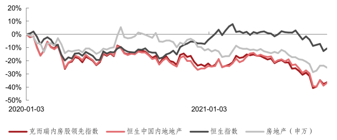 受政策及大市影響,自2020年1月以來,克而瑞內(nèi)房股領(lǐng)先指數(shù)呈現(xiàn)出下跌趨勢(shì)。