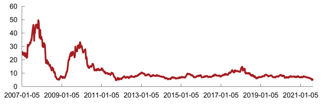 注:1)恒生中國內(nèi)地地產(chǎn)指數(shù)的推出主要是為了反映前10只市值最大、流通性最高,在香港上市但主要營業(yè)收入來自中國內(nèi)地的房地產(chǎn)股票表現(xiàn)。當(dāng)前成分股共10只,分別為:中國金茂、中國海外發(fā)展、世茂集團(tuán)、龍湖集團(tuán)、華潤置地、龍光集團(tuán)、碧桂園、中國恒大、碧桂園服務(wù)、融創(chuàng)中國
