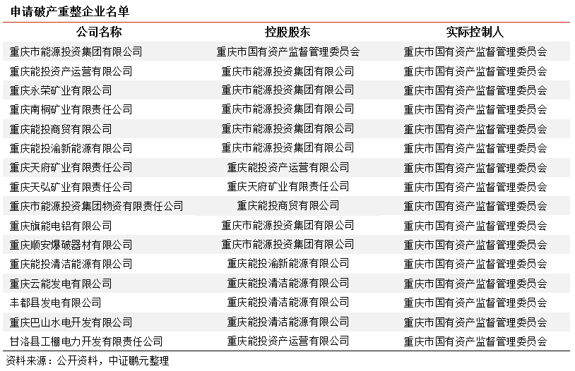 2022年4月11日,重慶能投為妥善化解債務(wù)風(fēng)險(xiǎn),向法院申請(qǐng)重整。