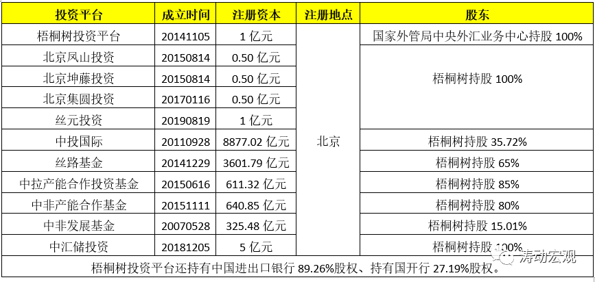 這一時(shí)期,外匯儲(chǔ)備規(guī)模的下降也對(duì)應(yīng)著貨幣供應(yīng)機(jī)制的調(diào)整,如原先80%以上的基礎(chǔ)貨幣供應(yīng)基于外匯占款,目前這一比例已經(jīng)降至60%左右。3萬億美元(約合20萬億人民幣),幾乎相當(dāng)于中國(guó)整個(gè)金融體系的注冊(cè)資本水平,如此龐大的外匯規(guī)模意味著外匯儲(chǔ)備管理的戰(zhàn)略意義是顯而易見的。這也是為什么國(guó)家外管局在2019年特別強(qiáng)調(diào)用好外匯儲(chǔ)備的背景所在。例如,2003年成立的中央?yún)R金公司、2011年成立的外匯儲(chǔ)備委托貸款辦公室、成為亞洲基礎(chǔ)設(shè)施銀行、服務(wù)一帶一路以及成立的梧桐樹投資平臺(tái)等舉措,均是為了拓展外匯儲(chǔ)備的多元化運(yùn)用。其中梧桐樹投資平臺(tái)、鳳山投資以及坤山投資等被稱為“A股三劍客”。