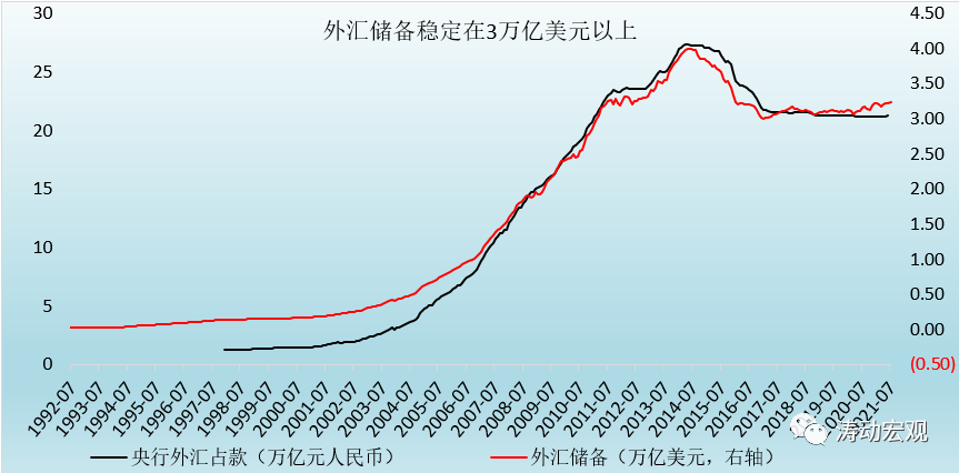 2、2014下半年以來,由于對(duì)外匯市場(chǎng)的干預(yù)以及外貿(mào)形勢(shì)惡化等因素,外匯儲(chǔ)備規(guī)模一路下降至2017年1月的29982.04億美元,并在之后的較長(zhǎng)時(shí)期內(nèi)穩(wěn)定在3萬億美元以上。截至2021年7月,外匯儲(chǔ)備規(guī)模已達(dá)到3.24萬億美元,2020年以來凈增0.13萬億美元。