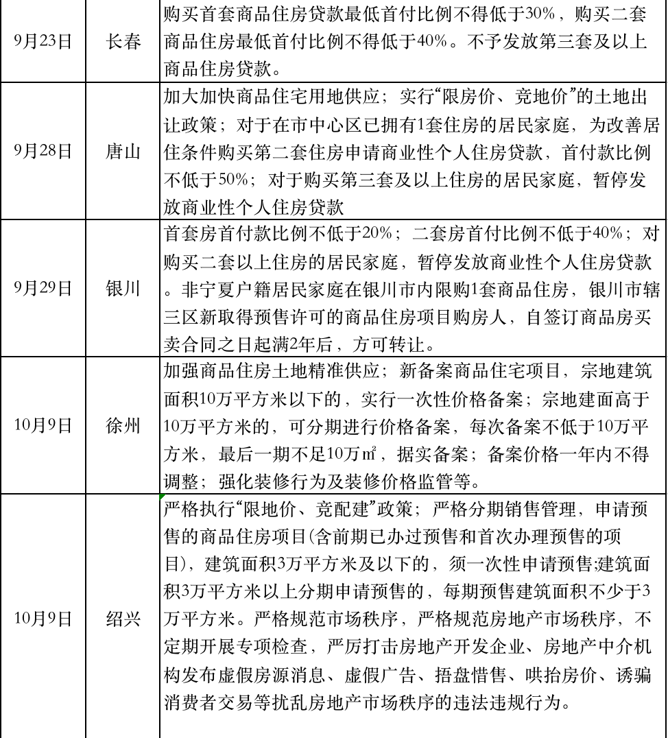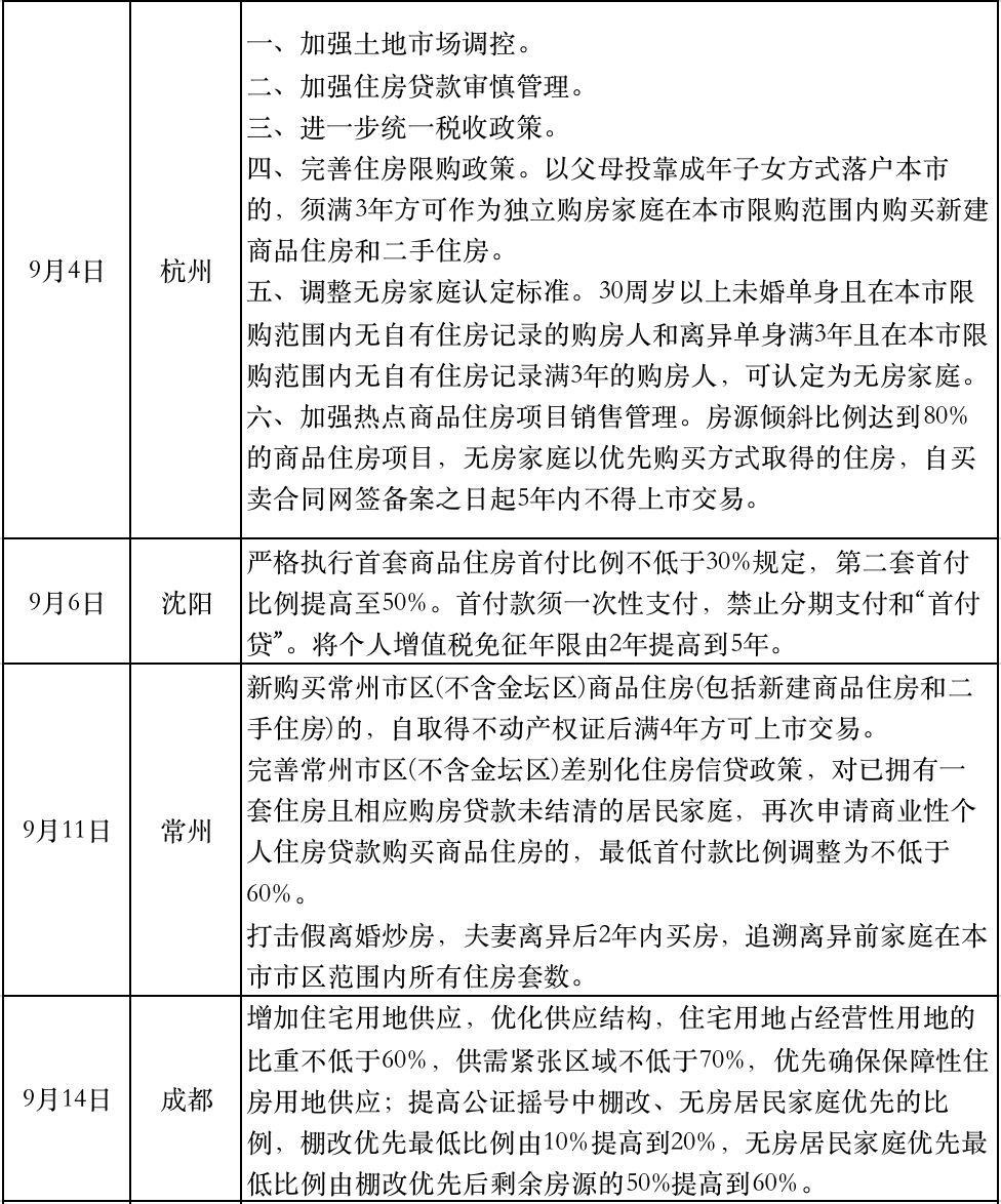 值得注意的是,三季度以來,多個熱點城市出臺樓市調控背景下,樓市整體平穩運行,但三四線城市打補丁政策趨勢依然持續,“房住不炒”全面升級。