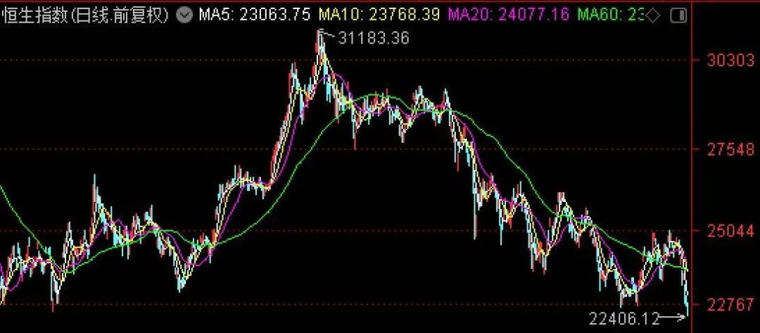 港股28日早盤低開,恒生指數下跌逾300點,一度跌超1.5%,盤中創出22406.12點近兩年新低。