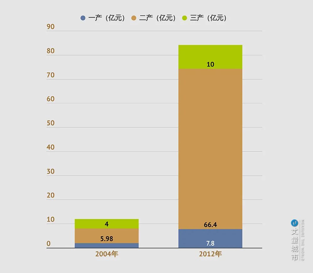 ▼ 從宋莊2004年GDP與2012年GDP對比中看出,宋莊的三產(chǎn)增長緩慢
