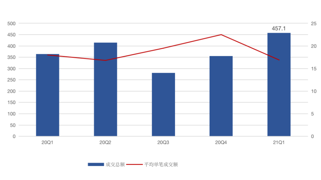 圖:20Q1-21Q1內地大宗物業市場成交總額變化