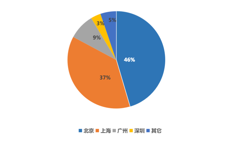 從重點城市成交情況來看,京滬繼續為全國大宗交易絕對主力城市,兩個城市交易總額占比超80%,其中北京總成交額約213.6億元,占比46%領跑全國;上海總成交額第二175.7億元,占比近37%。