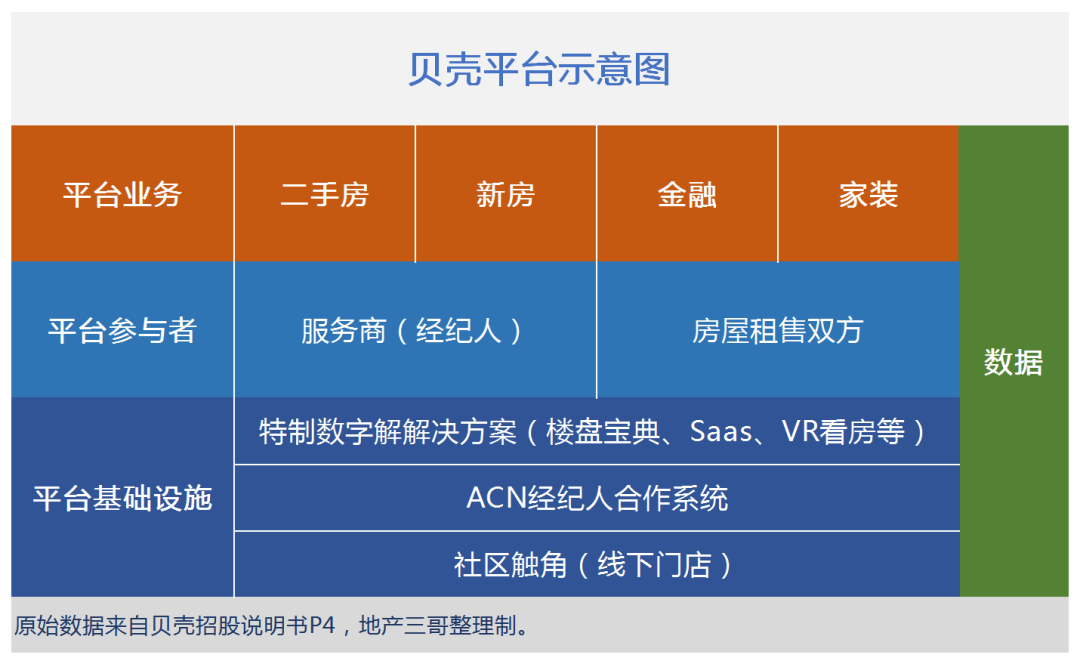 在這個(gè)平臺(tái)上,租售雙方在中介服務(wù)商的撮合下進(jìn)行交易,貝殼的牛逼在于它的平臺(tái)基礎(chǔ)設(shè)施: