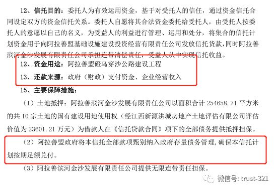 項目本身是一個常見的基建類信托,資金用于公路建設,彼時對政府三件套之類尚未嚴厲約束,風控中有一個“將信托全部款項納入政府存量債務管理”的措施(背后應當有紅頭文件支持),也就是明確了該筆借款屬于“政府債務”。