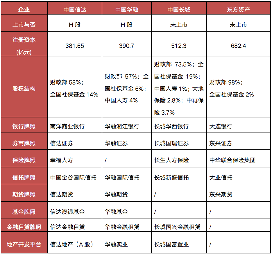 全國性AMC由財政部直接控股,資金實力雄厚(注冊資本大),不良資產(chǎn)管理的經(jīng)營范圍為全國性,主要參與一級市場。發(fā)展到現(xiàn)在,全國性AMC擁有AMC、銀行、證券、保險、基金、金融租賃等多元業(yè)務(wù),逐步轉(zhuǎn)變?yōu)槿普盏慕鹑诳毓杉瘓F,同時還廣泛涉足私募基金、房地產(chǎn)開發(fā)等業(yè)務(wù),地產(chǎn)業(yè)務(wù)平臺上,除東方資產(chǎn)外,中國信達、中國華融和中國長城旗下均設(shè)立房地產(chǎn)開發(fā)平臺。