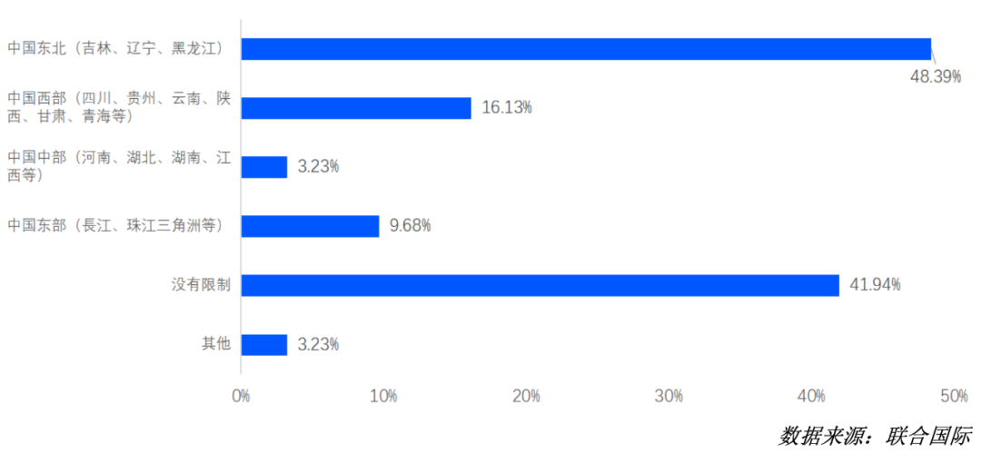 大多數(shù)受訪者表示他們不會(huì)投資于中國(guó)某些地區(qū)的債券。48.4%的受訪者不會(huì)考慮投資東北地區(qū),16.1%的受訪者不會(huì)考慮投資中國(guó)西部地區(qū)。但許多受訪者(41.9%)表示,他們?cè)诘赜蚍矫鏇](méi)有投資限制。1名受訪者明確提到不會(huì)考慮投資天津。(見(jiàn)附表3)