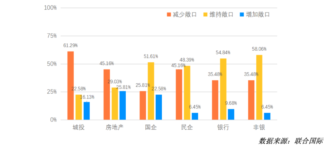 對(duì)于高收益級(jí)債券,大多數(shù)受訪者不打算增加任一行業(yè)的敞口。在城投和房地產(chǎn)行業(yè)方面,大多數(shù)受訪者傾向減少其風(fēng)險(xiǎn)敞口(見(jiàn)附表6)。