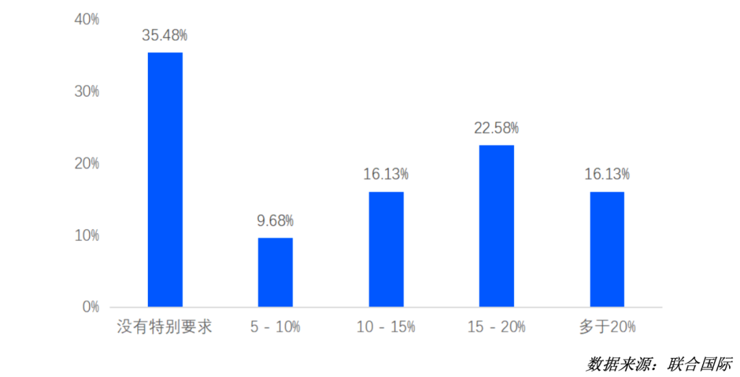 如果受訪者要回歸中國(guó)房地產(chǎn)高收益美元債券市場(chǎng),不到 10% 的受訪者只要求適中水平的年回報(bào)率,為 5-10%。理所當(dāng)然的有 54.8% 的人要求高回報(bào)率(超過(guò) 10%)。然而,他們中的一大部分人對(duì)要求的回報(bào)率沒(méi)有特別偏好(見(jiàn)附表9)。