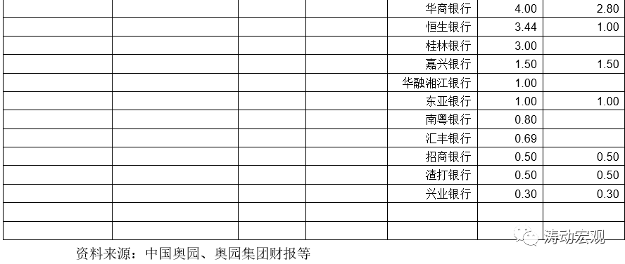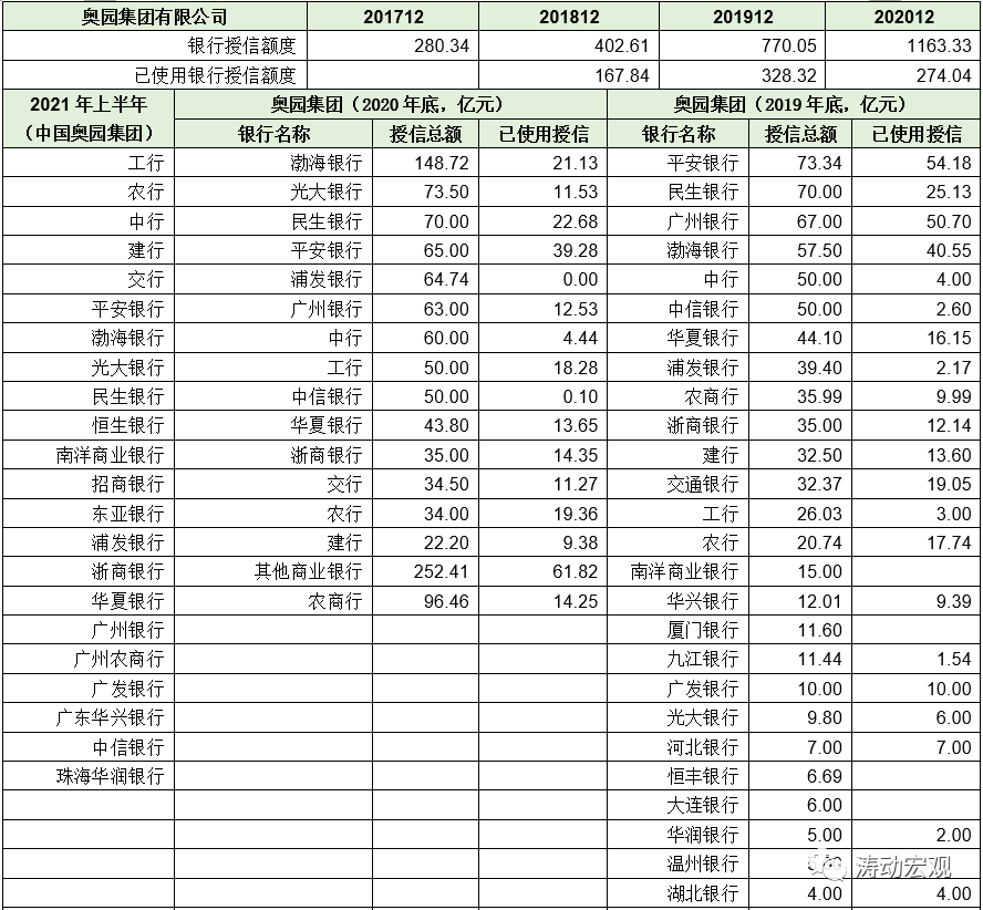 2、2020年以前奧園集團基本上會披露其往來銀行的授信額度和具體提用情況,不過2020年以來奧園披露的信息逐漸簡化,2020年未披露具體銀行的數量大幅減少,今年上半年則直接不披露授信金額、只披露往來銀行名稱。