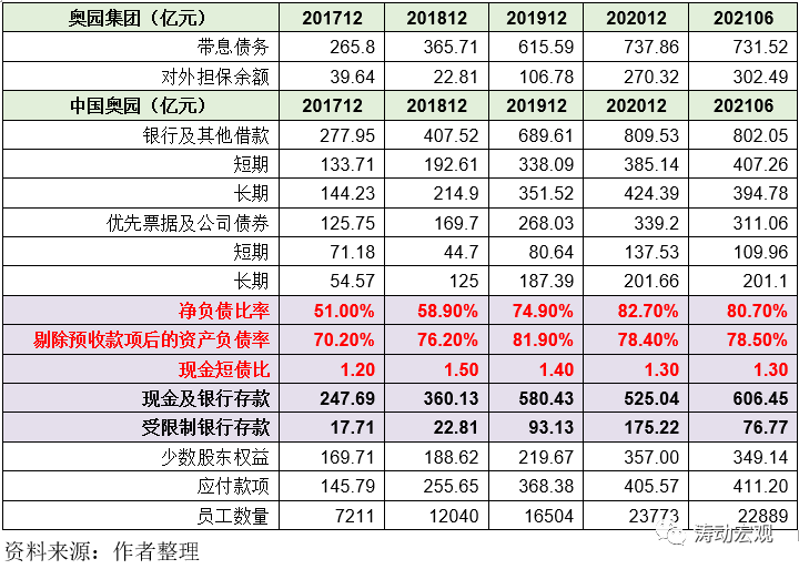 1、截至2021年6月底,奧園集團披露的帶息債務和對外擔保余額為731.52億元和302.49億元,而中國奧園披露的帶息債務合計達到1196.83億元,考慮到中國奧園是源頭,意味著奧園系的直接帶息債務規模應接近1200億元,對外擔保余額應在300億元以上。
