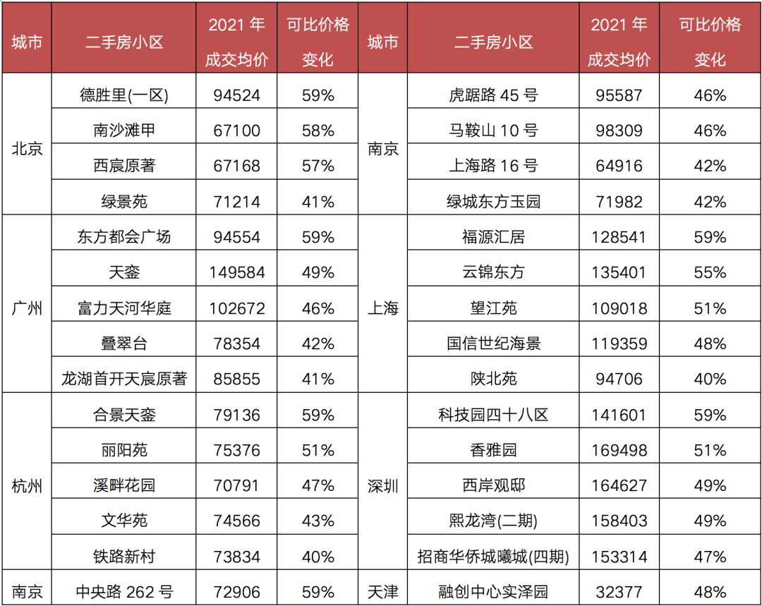 表:熱點(diǎn)城市部分可比價(jià)格