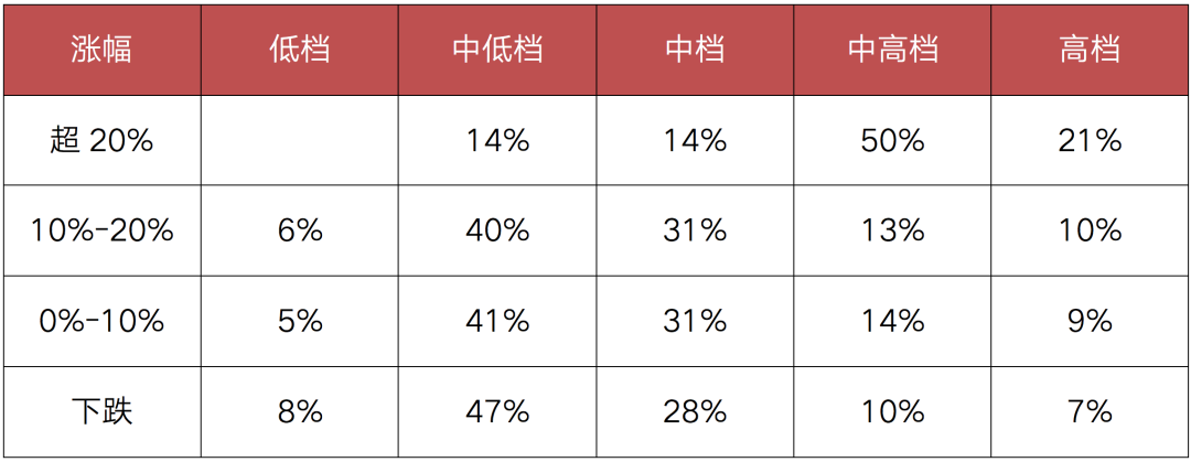 正是由于房?jī)r(jià)漲幅超20%、40%的小區(qū)具有較高占比,因此市場(chǎng)直觀感受中房?jī)r(jià)“漲聲”一片。