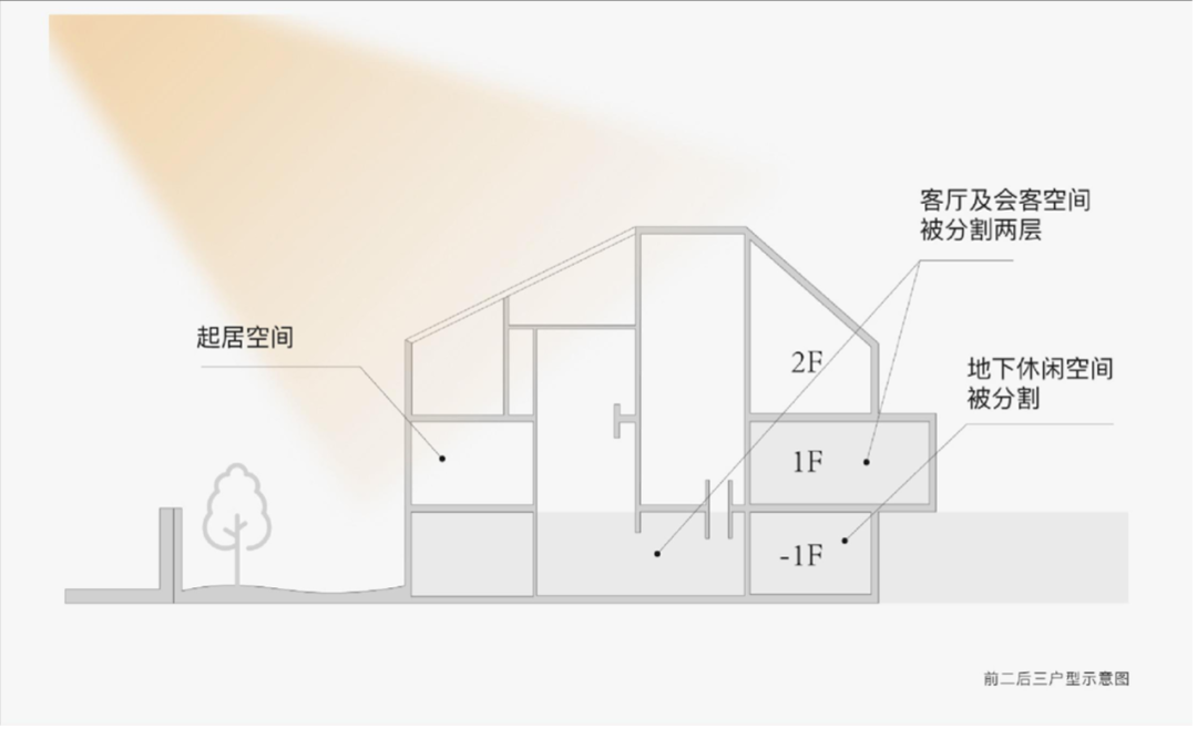 比如,現在很多別墅項目都熱衷“前二后三”的設計——把客廳設計在首層,花園放在負一層。業主必須從一層入戶到客廳,然后再下一層才能到達花園。