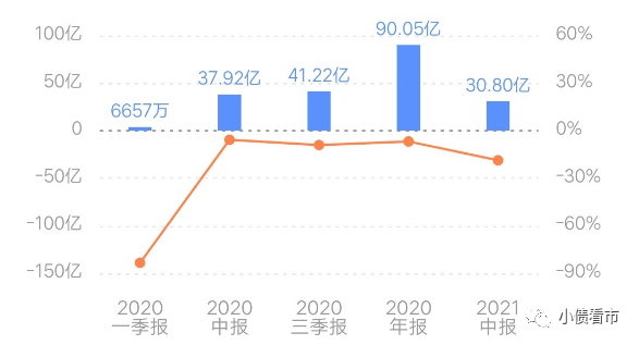從業績上看,繼2020年凈利潤下滑6.9%后,2021年上半年富力地產實現歸母凈利潤30.8億元,同比再次下滑18.78%。