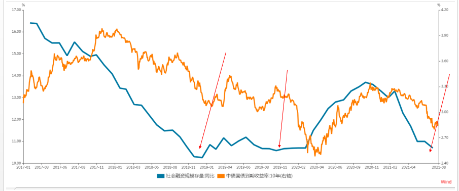 我們再看債券市場。拋開2020年初的疫情因素,整體上,我們看到了信貸的脈沖和十年期國債收益率也是高度正相關。