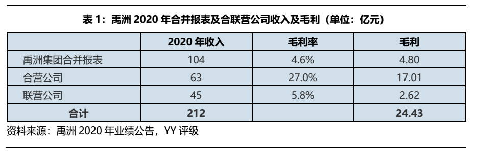 3月30日,公司召開線上業績發布會并發布了更為詳細的2020年度業績公告,得知公司2020年凈利潤低主因當年確認收入大幅減少,2020年公司營收104億元,同比減少128億元;毛利僅有4.8億元,同比減少56億元,毛利率僅4.6%。同時,2020年,禹洲的合營公司實現全口徑收入63億元,其中物業銷售收入在62億元以上,毛利率約27%;合營公司全口徑收入和毛利率分別約45億元和5.8%。
