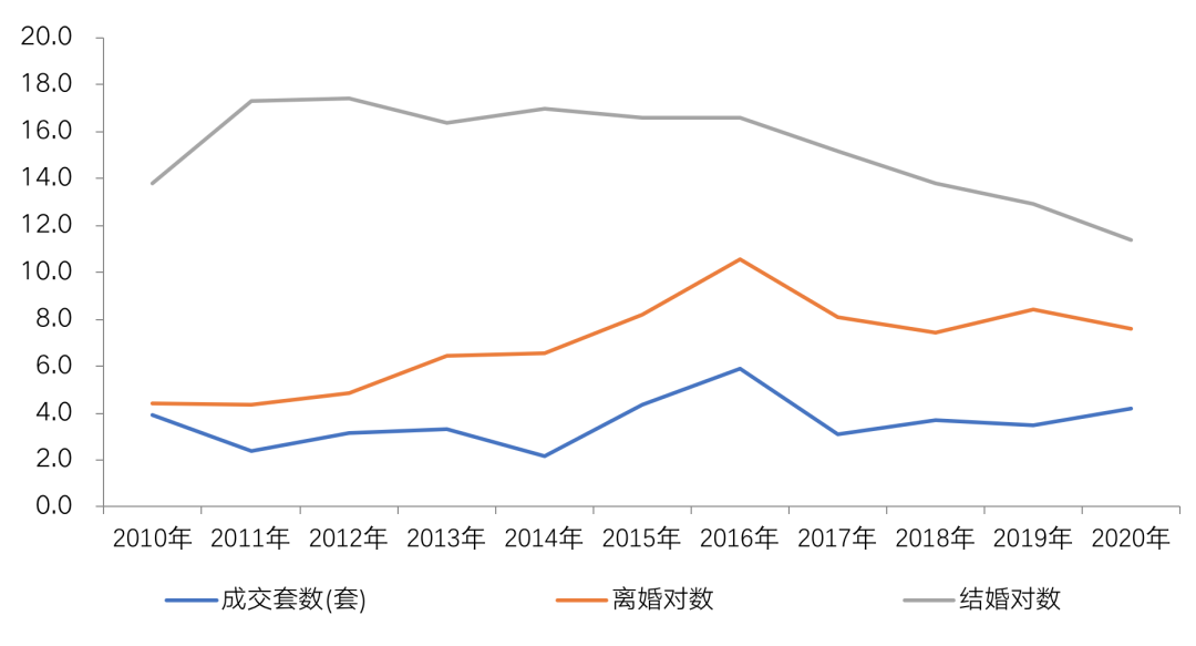 婚育是推動住房需求入市的重要動力,但是受婚育觀念、社會年齡結構結構變化等因素影響,近年來新婚人數(shù)快速下滑,與之相關的住房需求也正在面臨著巨大變化。