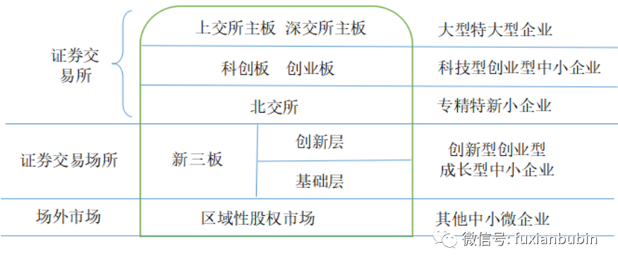 從企業(yè)數(shù)量和規(guī)模上來區(qū)分,常用金字塔來形容我國多層次資本市場(chǎng)結(jié)構(gòu):區(qū)域性股權(quán)市場(chǎng)為塔基,區(qū)域性市場(chǎng)、場(chǎng)外市場(chǎng),但其擁有和服務(wù)著最海量的中小微企業(yè);新三板為塔中,全國性證券交易場(chǎng)所、場(chǎng)內(nèi)市場(chǎng),服務(wù)廣大的創(chuàng)新型創(chuàng)業(yè)型成長型中小企業(yè),承擔(dān)承上啟下的重任;京滬深三交易所為塔尖,服務(wù)企業(yè)相對(duì)較少,但企業(yè)相對(duì)已很成熟。如果根據(jù)市場(chǎng)的重要性來看,又是一個(gè)倒金字塔結(jié)構(gòu),塔尖對(duì)我國經(jīng)濟(jì)的重要性最大。
