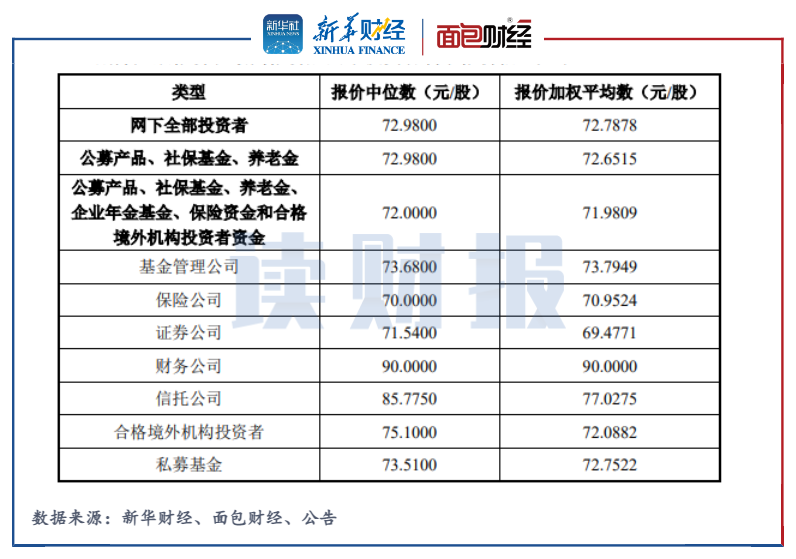 其中,廣發基金報價122元/股,是申購成功的投資者中報價最高的機構,共獲配79775股。其申報價相應的市盈率達到91.59倍,遠高于同期中證醫藥制造業平均市盈率35.4倍。
