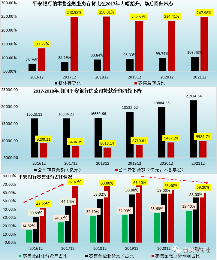 (1)2016年底,平安銀行的零售存貸比僅為133.77%,2017年底便大幅提升至248.98%,隨后便穩定在這一數值附近。