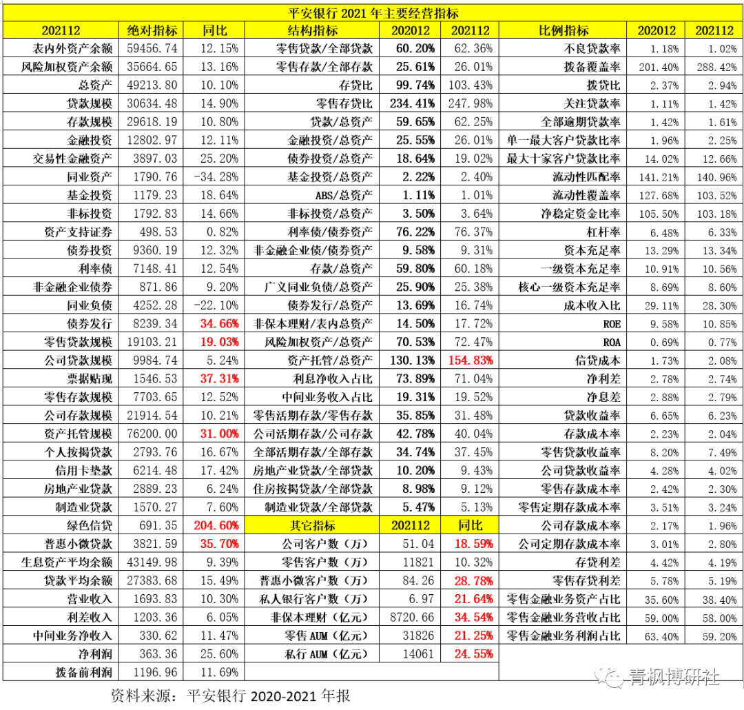 1、平安銀行零售AUM和私行達標客戶AUM分別高達3.18萬億和1.41萬億,較2020年分別凈增0.56萬億和0.28萬億,增幅分別達到21.47%和24.42%。顯然平安銀行零售AUM與私行AUM的全年增量已經相當于一家中小銀行。