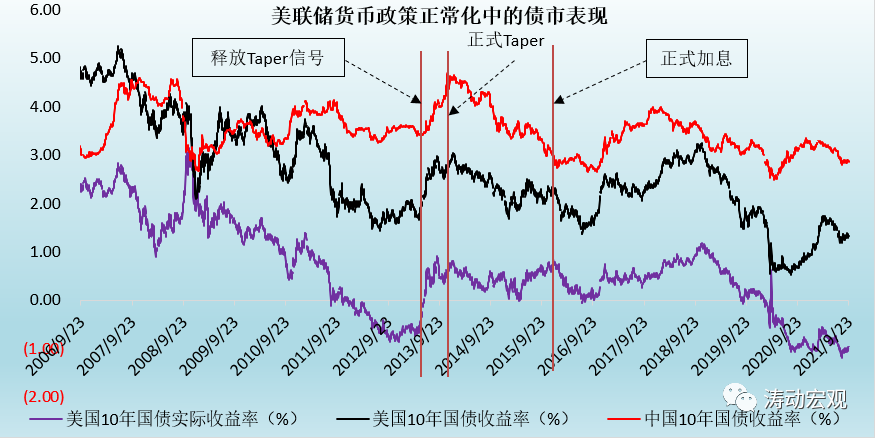 1、在美聯(lián)儲(chǔ)向市場(chǎng)釋放Taper信號(hào)和正式啟動(dòng)Taper過程中,美國10年期國債收益率趨于快于上行。