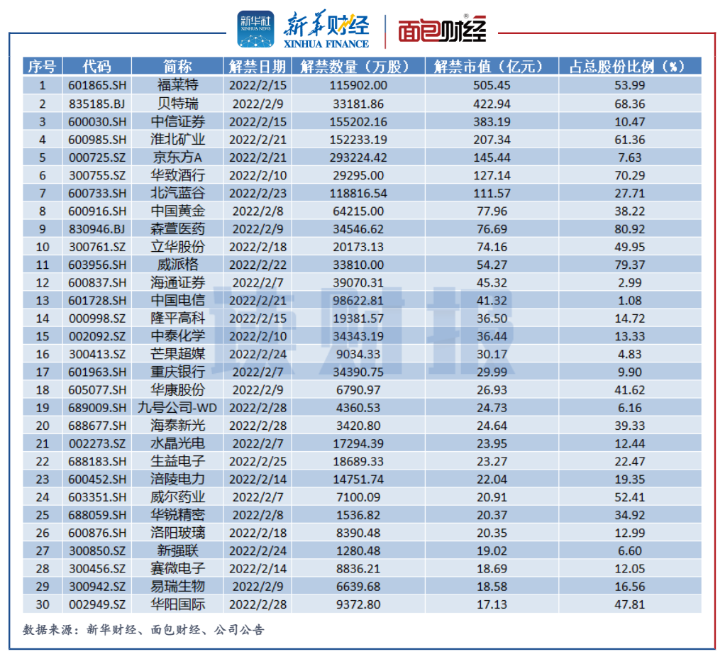 圖4:2022年2月解禁市值排名前30個(gè)股