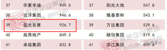 據克而瑞數據顯示,2020年藍光發展以926.7億操盤金額位居第39位,同比后退6位;以1073.1萬平方米操盤面積位居第22位。