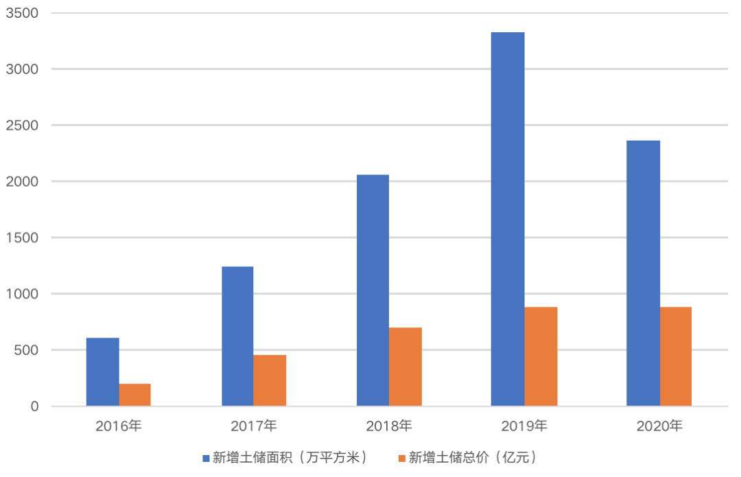 圖:金科2016-2020新增土儲(chǔ)規(guī)模