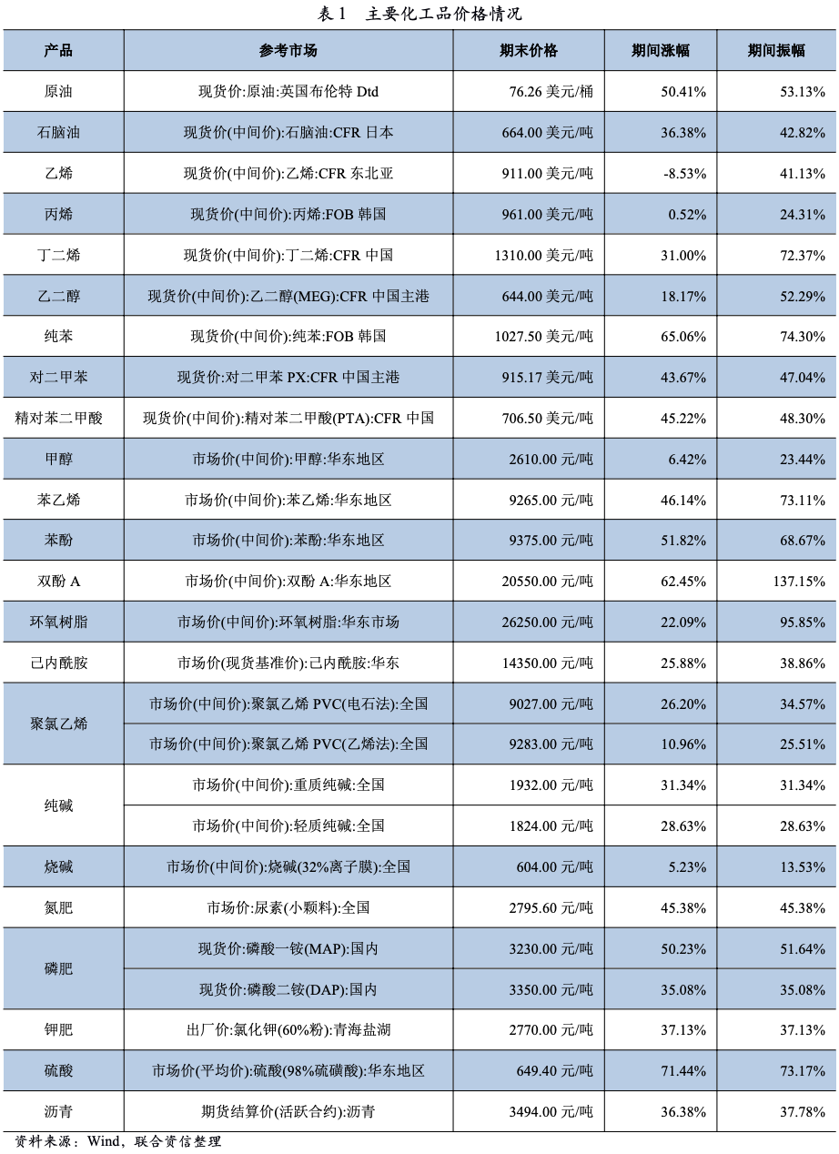 2021年上半年,受益于原油價格上漲及需求增加,主要化工品價格和產(chǎn)量同比增長,化工企業(yè)經(jīng)營業(yè)績顯著改善。